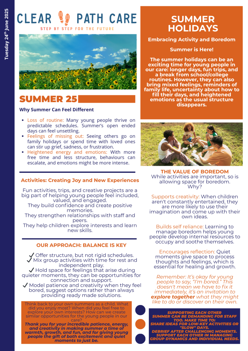 At Willow House we provide our staff and residents with important information and psycho-education through our monthly bulletins, created by our Counsellor, Abi. Our monthly bulletins are designed for staff and residents to look after their mental health and general wellbeing and essentially aid in things we can do with the young people at Willow House to include them and facilitate thinking out of the box ideas for engagement.